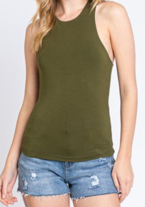 PIPER Olive Layered Sleeveless High Neck Top