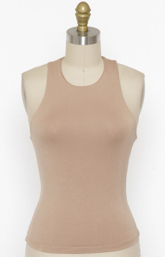 PIPER Taupe Layered Sleeveless High Neck Top
